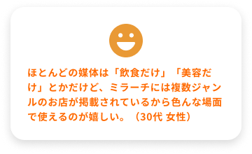 - 飲食、美容、温泉・宿泊、結婚、車、住まい、日用品、おしゃれなど生活に関係するすべてのジャンルを掲載